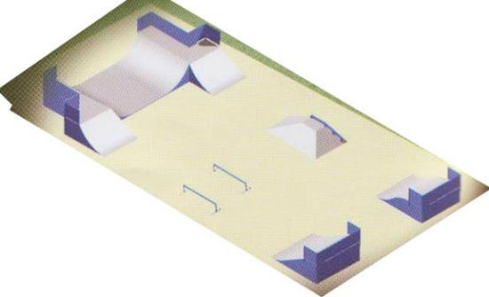 3、比賽級:大型弧面出發臺、大型斜面出發臺、大型弧面拋臺、大型斜面拋臺、臺階、樓梯扶手、大型金字塔、大型斷橋、小型u池、大型U池