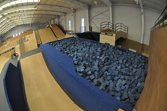 含有海綿池、蹦床、軟著陸緩沖墊等輔助訓練設施的場地。